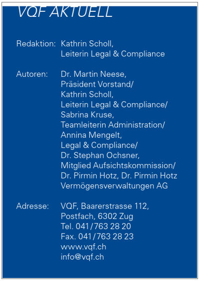 Diesmal legt Herr Dr. Pirmin Hotz, welcher mit seiner Firma Dr. Pirmin Hotz Vermögensverwaltungen AG Mitglied beim VQF ist, aus Sicht eines Praktikers und Betroffenen dar, was die Behörden beim Erlass neuer Regulierungen beachten sollten und was die Vermögensverwalter selber zu einem wirksamen Anlegerschutz beitragen können.