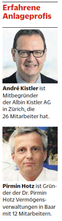 ist Gründer der Dr. Pirmin Hotz Vermögensverwaltungen in Baar. Die Firma hat 12 Mitarbeiter und betreut Private und Pensionskassen. Bei Hotz stiegen die verwalteten Vermögen um 12%.